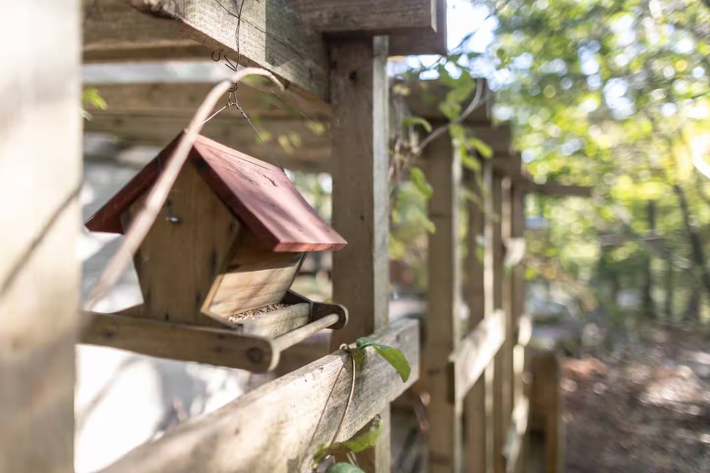 Cette maison en bois, équipée et pleine de charme, se niche dans un coin paisible du camping. Avec son espace optimisé et sa grande baie vitrée, elle offre un confort chaleureux et une immersion unique au cœur de la forêt.