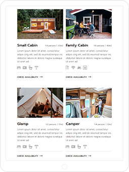 Showcase what your campsite has to offer with a set of splendid premade accommodation lists