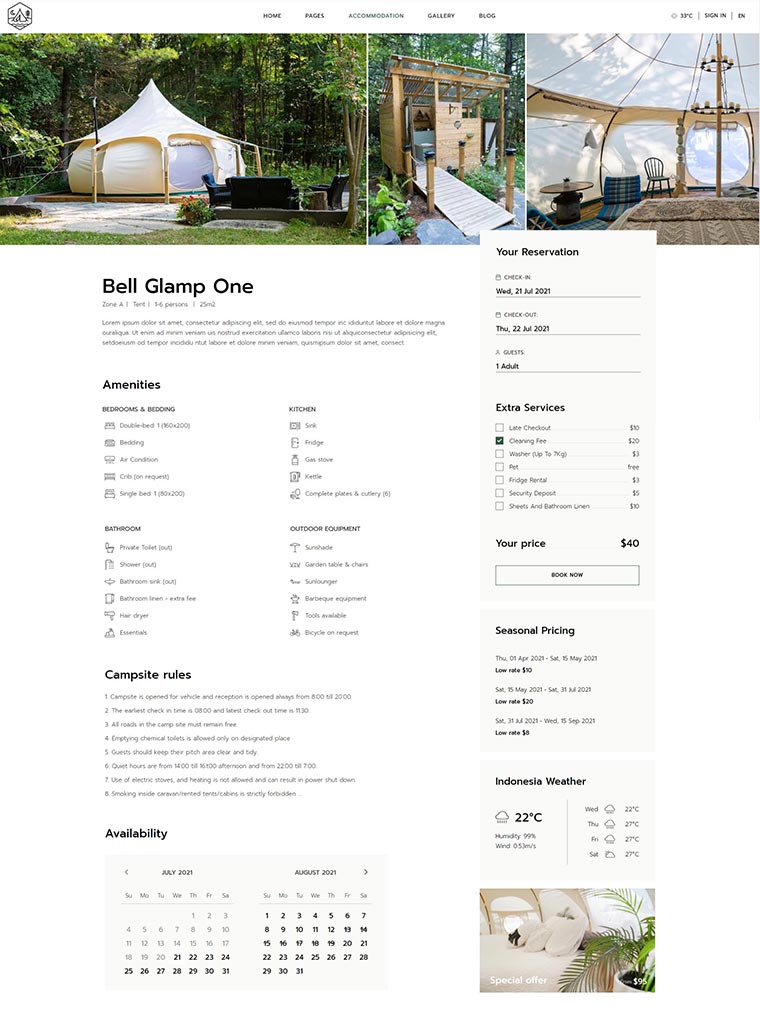 Kamperen comes with an array of incredible multipurpose inner pages for prices & offers, camping activities and more